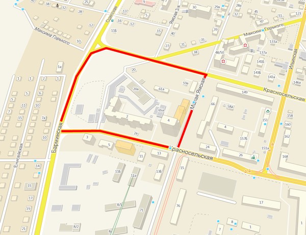 Данный комплекс расположится на площади в 20900 кв. м в границах улиц Барминская, Горького, Малая Ямская и Красносельская, предусматривая при этом подземную автостоянку.